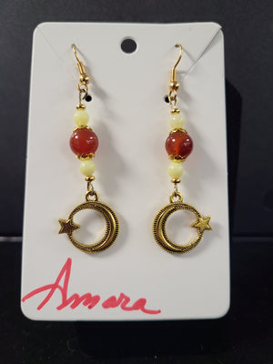 Moonstone & Green Aventurine w/Triple Goddess Charm Crescent Moon Earrings
