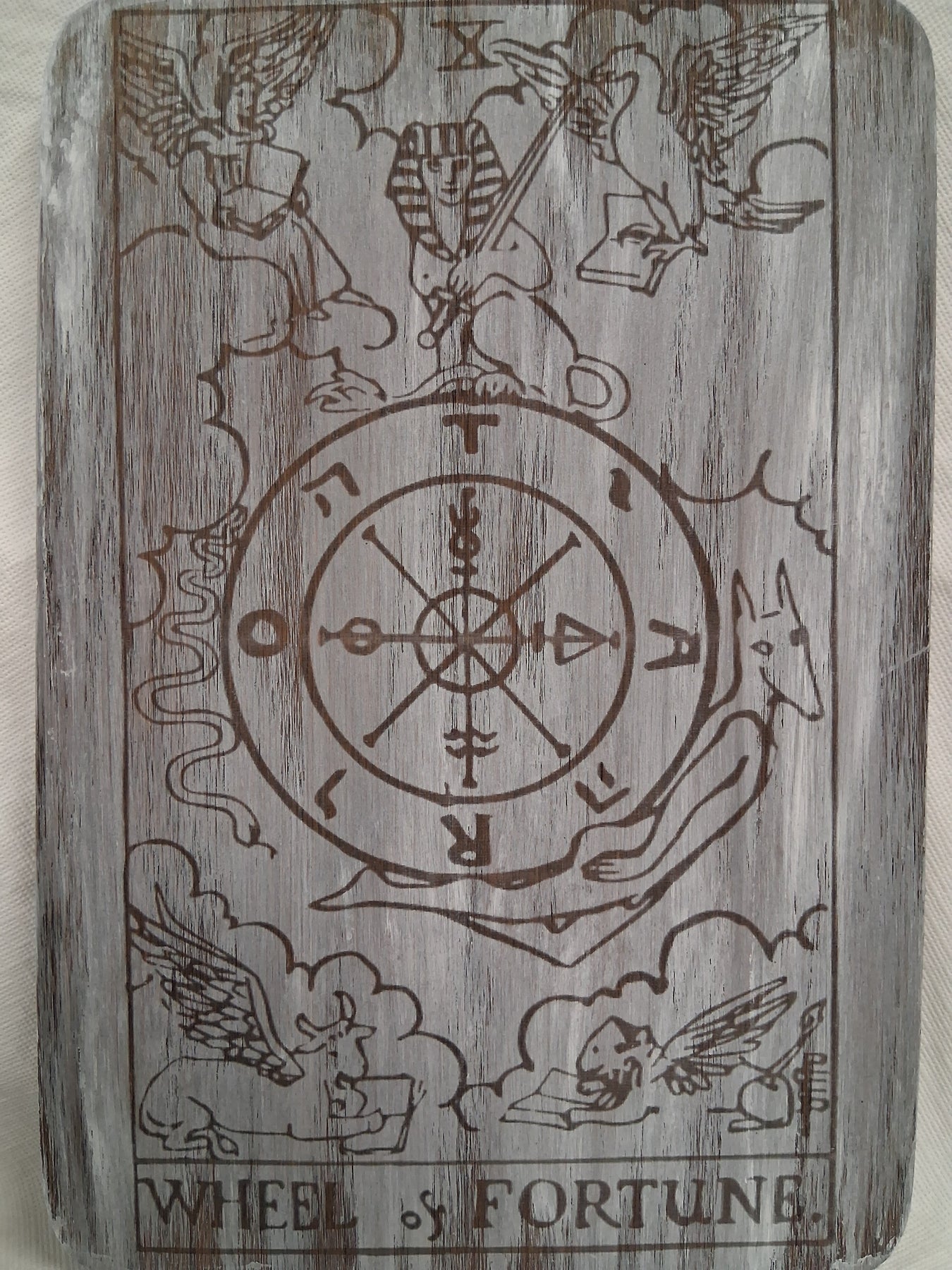 The intricately engraved or painted “Wheel of Fortune” design serves as a powerful symbol of life’s ever-turning wheel — a reminder to stay adaptable, manifest positive change, and welcome new chapters with grace. Perfect for tarot enthusiasts, manifestation work, or anyone seeking an inspiring focal point, this piece beautifully marries spiritual symbolism with functional design.